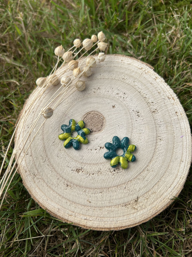 Pampilles Garance crocodile. Mélange de deux verts différents à paillettes.